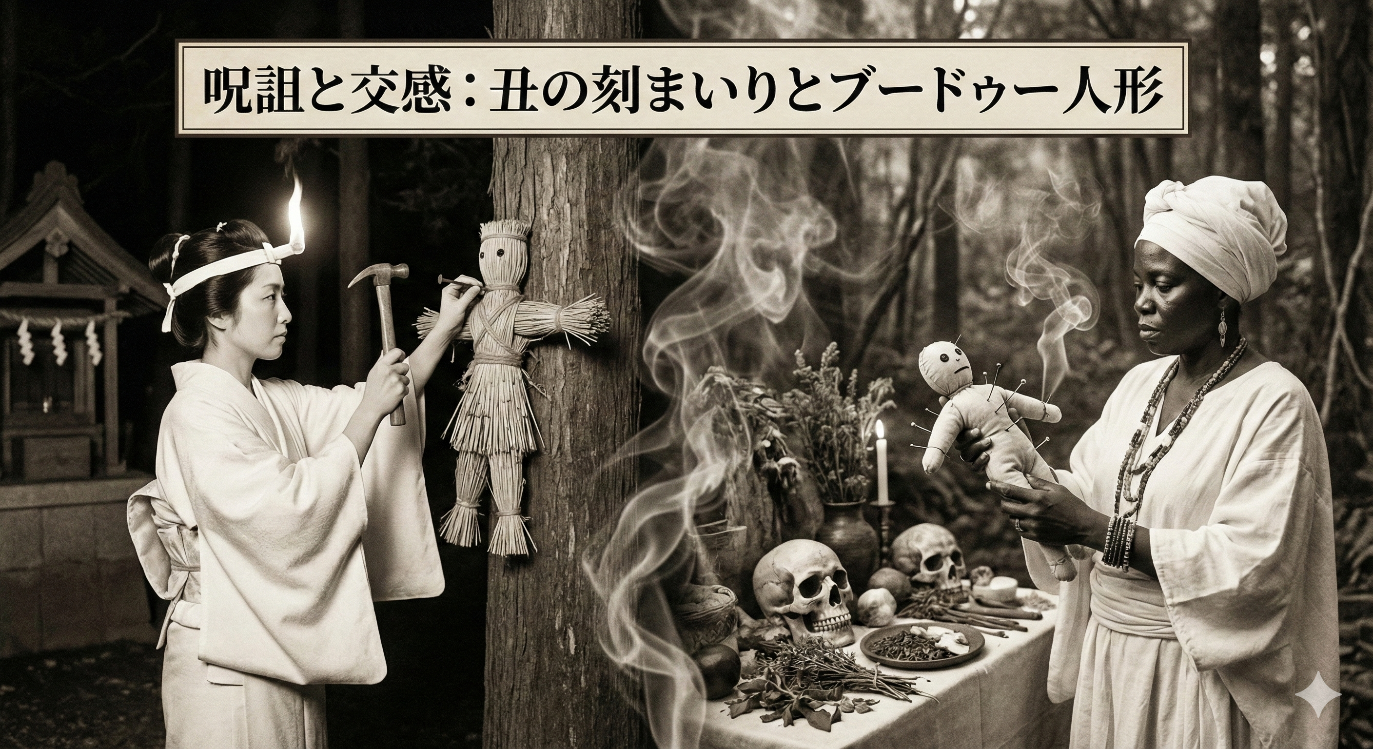 藁人形を用いた丑の刻参りは、稲作文化に基づく「聖なる藁」を、神への「汚染」というタブーを通じて「殺意の媒体」へと転化させる、日本独自の複雑な儀礼システムです。それは直接的な魔術的結合を重視する海外のポペットとは異なり、場所(神域)と時間(丑の刻)という環境因子を介して神威をハッキングする試みでした。